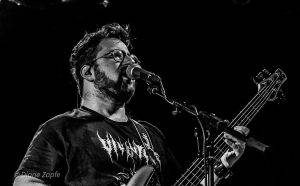 Askeesi sind aus Georgien und zelebrieren eher atmosphärischen Black Metal. Kopf der Band ist Beka Gachava und am Mikrofon steht die Sängerin Gvantsa Giorgadze. Die „Choice I`ve Never Had“ aus dem Jahr 2021 kommt noch sehr ruhig rüber und erinnert mich an Thy Light oder die Neue von Enisum, während „Genetic Grief“(2022) schon derbere Parts beinhaltet und besonders durch die Spiellänge von 83 Minuten besticht. Bei der Neuerscheinung „The Roots Of A Sacred Tree“ vom 5.Oktober 2024 gehts richtig zur Sache, was live nochmal wuchtiger und agressiver klingt. Zumal sie auch in voller Besetzung mit 6 Musikern auf der Bühne standen und mit drei Gitarren aufwarten konnten. Die Texte handeln von den Kräften der Natur, denen wir ja nach wie vor unterlegen sind, zum starken Kontrast des religiösen Fanatismus, der allein auf menschlichen Denken beruht.