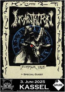Am 3. Juni spielte die Death Metal Legende INCANTATION, die seit Jahrzehnten zu den Urgesteinen des Genres zählen, ein exklusives Clubkonzert in der Goldgrube Kassel. Schon beim Opener krachte es gewaltig: tiefergestimmte Gitarren, präzises Drumming und der unverkennbare Growl von Frontmann John McEntee ließen keinen Zweifel daran, dass Incantation auch nach all den Jahren nicht an Energie verloren hatten. Es gab zwar keine Vorband, aber sie spielten knapp über eine Stunde. Ein kurzer, heftiger Abriss – so kompromisslos wie der Death-Metal selbst. FETT.