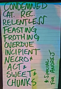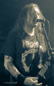 Molder seit 2017 aktiv und stilistisch fest im klassischen US-Death-Metal der späten 80er/ frühen 90er verwurzelt. Ihr aktuelles Album „Catastrophic Reconfiguration“(vom 8.November 2024) ist ein Manifest für schmutzigen, knochenknackenden Death Metal – und live liefern sie genau das. Mit tightem Spiel, rotzfrecher Attitüde und ein Hauch von Thrash-Energie preschten sie durch ihr Set. Hier gab es nicht die durchgehend tiefen Growls. Der Gesangsstil von Sänger Aaren Pantke wird eher mit dem vom Asphyxsänger Martin von Drunen verglichen – rauchige,screamige Growls teilweise dahingerotzt. Carlos Santini an der Gitarre, Dominic Vaia Bass und am Schlagzeug Kyle Pooley. Für einen Montagabend fanden sich genügend hartgesottene Fans ein, um nicht nur für ordentlich Stimmung (Andrej sei dank- lach) vor der Bühne zu sorgen, sondern auch eine Zugabe zu fordern, die gegeben wurde. Mega, die Amerikaner brachten eine Spiellaune mit, die sich eins zu eins auf die Zuschauer übertrug. Ich persönlich war hellauf begeistert, Molder haben einfach nur richtig Spaß gemacht. Punkt.