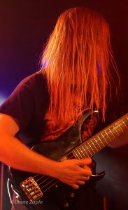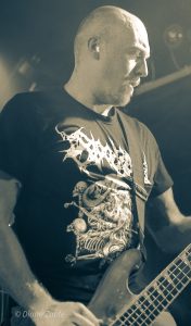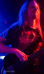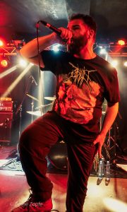 Die Vorband Bloodjob aus Gießen heizte den zahlreich erschienen Gästen ordentlich ein. Die Band steht seit 2007 für kompromisslosen Brutal Death Metal, der technisch versiert und aggressiv daherkommt. Mit im Gepäck hatten sie Songs von ihren beiden Demos, dem Album „Sick Concept Humanity“(2019) und der aktuellen EP “ Metastasis“(2023). Sänger Sascha Kaiser liefert Growls im Stil von Benighted ohne die Pigscreams. Mit überraschend hoher Sprechstimme fragte er nach einem Bier, dass ihm jemand schließlich brachte, während ein anderes Bier über mir verteilt wurde. Prost. An der Gitarre überzeugte Olli mit präzisen Riffs, Robert hielt den Bass wuchtig im Hintergrund, und Hannes Koch (auch aktiv bei SUN EATER) lieferte am Schlagzeug eine beeindruckende Show ab. Einmal verhedderte sich tatsächlich ein Drumstick in seiner wunderschönen langen Mähne – kann passieren. Bloodjob zeigten eindrucksvoll, dass Brutal Death Metal nicht nur hart, sondern auch unterhaltsam sein kann – ein starker Auftakt für den Abend.
