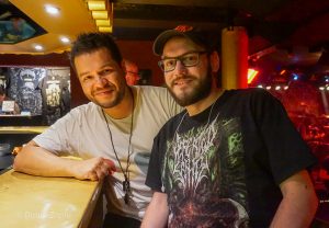 Normalerweise ist in der Goldgrube um 19:30 Einlass und Beginn um 20:00. Da ich gerne zeitig komme, um noch in Ruhe ein Bierchen zu trinken und der Start auf halb neun verschoben wurde, blieb genügend Zeit, mich mit den neuen Soundmenschen für die „harten Sachen“ zu unterhalten. Herr Daniel Daza Galvis, 41 Jahre jung und 2022 aus Kolumbien nach Deutschland gekommen. Er wollte sich als Tontechniker weiterentwickeln und ist freiberuflich unterwegs. Tagsüber mischt er die Sprechstimmen bei Rednern auf Firmenkongressen und abends die Metalbands für die Grube. Die erste Band, die er hier mixte, war 2024 Exciter. Doch in der Unterhaltung wurde schnell klar, dass seine Musikkenntnisse, sowie sein persönlicher Musikgeschmack breit gefächert sind. So kam auf meinen Wunsch „Cynic“ nochmal zu sehen, sofort die progressive Musikempfehlung „Planet X“ mit einem Virgil Donati am Schlagzeug. Das sagt alles – freut euch weiterhin auf einen fetten und gut gemischten Sound.