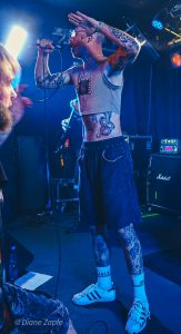 Die Hardcore/Death-Metal-Band Repressed aus Kassel und Marburg eröffnete den Abend mit einem druckvollen Set, das deutlich machte, wie sehr die fünf Musiker seit ihrer Gründung 2018 an Profil gewonnen haben. Bekannt geworden mit ihren EPs Desist (2020) und Chapters Of Dissimulation(2022), präsentierten sie nun auch Songs von ihrer am 11. Juli 2025 erschienenen dritten Veröffentlichung „Spiral“. Live zeigte sich schnell, dass die Band auf dem neuen Material stärker in Richtung Death Metal tendiert. Das Ergebnis: ein Sound, der noch härter und massiver wirkt, ohne dabei in alte Hardcore-Schemata zurückzufallen. Julian Göttlich überzeugte mit kraftvollem Gesang, der sowohl Growls als auch Screams souverän abdeckte. Zwischen den Songs überraschte er allerdings mit charmant-lieblichen, fast schon freundlichen Ansagen, die einen spannenden Kontrast zur Härte der Musik bildeten – ein Detail, das viele im Publikum zum Schmunzeln brachte. Thorben Spindler am Bass und Nick Meyer am Schlagzeug sorgten für ein solides Fundament; Meyer trat dieses Mal weniger exzentrisch auf, ohne das zuvor gewohnte auffällige Outfit, dafür umso konzentrierter hinter seinem Kit. An den Gitarren lieferten Sebastian Balk und Emanuel Oropesa messerscharfe Riffs und Breakdowns – wobei besonders Oropesa auffiel, da er keine Sekunde stillhielt, permanent über die Bühne fegte und die Energie direkt ins Publikum zurückspiegelte. So gelang es Repressed, die Menge von Beginn an in Bewegung zu bringen und die Spannung für den weiteren Verlauf des Abends deutlich anzuheizen. Die Mischung aus kompromissloser Härte und den fast schon liebenswürdigen Ansagen von Julian schuf eine ungewöhnliche, aber äußerst einnehmende Atmosphäre. Als schließlich Gutalax die Bühne betraten, war das Publikum bereits bestens vorbereitet – aufgedreht, durchgeschwitzt und voller Vorfreude. Repressed hatten ihre Rolle als Opener mit Bravour erfüllt: Sie waren nicht nur der passende Anheizer, sondern auch ein eigenständiges Highlight des Abends, besonders für mich.