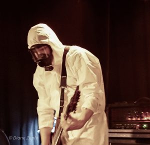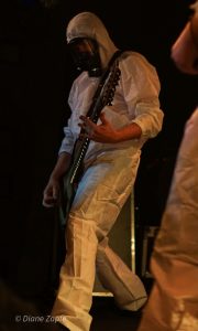 Nach der intensiven Eröffnung durch Repressed war es Zeit für das Spektakel, auf das alle gewartet hatten: Gutalax aus Tschechien, die Meister des „Klo-Grindcore“, feierten an diesem Abend nicht nur ihren Auftritt, sondern zugleich ihr 15-jähriges Bandbestehen. Schon die Ankündigung des Konzerts hatte für enorme Resonanz gesorgt – die Show war im Nu ausverkauft. Statt der eigentlich möglichen 200 Tickets entschied man sich bewusst für nur 150 Gäste, damit auf der Tanzfläche genügend Platz zum ausgelassenen Feiern blieb. Und ausgelassen wurde es sofort: Die Musiker betraten die Bühne in ihren typischen weißen Schutzanzügen, einer davon mit Atemschutzmaske, der Sänger wie gewohnt mit seiner markanten Schweißerbrille. Mit dem ersten Ton brach eine Feier los, die mehr einem anarchischen Happening als einem gewöhnlichen Konzert glich. Klobürsten, aufblasbare Utensilien aller Art und natürlich reichlich Toilettenpapier, das wie Schneeflocken durch den Raum wirbelte, gehörten zur Grundausstattung. Bemerkenswert war auch, dass Teile des Publikums den Spaß mitmachten: Einige Fans trugen ebenfalls weiße Overalls, zwei Besucher tauchten sogar stilecht im kompletten OP-Outfit mit Haarnetz und Hygienefüßlingen auf – ein Bild, das den absurden Charme des Abends perfekt einfing. Musikalisch lieferten Gutalax genau das, was die Szene seit Jahren liebt: ultrakurze, druckvolle Grindcore-Songs, dazu der mittlerweile legendäre „Schnorchelgesang“, der jedes Mal für kollektives Gelächter und euphorische Rufe aus dem Publikum sorgt. Das Ganze wirkte weniger wie ein Konzert, sondern mehr wie eine Feier im Ausnahmezustand, bei der jede Sekunde etwas Neues durch den Raum flog, jemand tanzte, lachte oder mitgröhlte. Nach einer Stunde war die Halle ein einziges Chaos aus verschwitzten Körpern, Klopapierfetzen und glücklichen Gesichtern. Gutalax hatten wieder einmal bewiesen, dass sie mit ihrem absurd-sympathischen Konzept keine Grenzen kennen und dass Grindcore auch ein großes, ausgelassenes Fest sein kann.