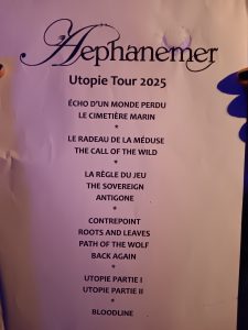 Und dann kam der Headliner: Aephanemer aus Toulouse, Frankreich. Mit ihrer Mischung aus symphonischem Glanz und Death-Metal-Wucht erorberten sie die Bühne im Sturm. Songs vom neuen Album „Utopie“ (erschienen am 31.Oktober) ließen das Publikum jubeln, mitklatschen und headbangen. Sie spielten komplett Utopia I und Utopia II, als Zugabe gab es „Bloodline“. Die orchestralen Elemente verschmolzen mit messerscharfen Riffs und die Band zeigte, wie perfekt Virtuosität und Gefühl Hand in Hand gehen können. Wie mühelos die zierliche Sängerin von Growls in opernartige Stimmlage wechseln konnte, war mehr als beeindruckend. Jede Note war präzise, jede Geste ehrlich. Ein würdiger Abschluss eines außergewöhnlichen Abends.