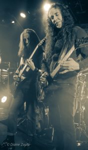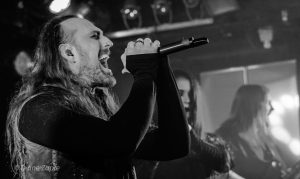 Schon vor dem Eingang war klar: Dieser Abend würde etwas Besonderes. Das Konzert war später restlos ausverkauft und eine Menschenschlange stand auf der Straße an. Drinnen dröhnten bereits die ersten Klänge – ich hatte es nicht rechtzeitig geschafft und Valhalore aus Brisbane, Australien, waren mitten im Set. Kaum war ich durch die Menge gedrängt, fand ich meinen Platz in der ersten Reihe, etwas rechts von der Bühne, bei bekannten Gesichtern, mit der Kamera fest in der Hand. Von hier aus konnte ich jede Bewegung, jeden Schweißtropfen und jedes Lächeln sehen. Das Lächeln stand den Musikern besonders gut, denn sie hatten zum ersten Mal die Gelegeheit in Deutschland aufzutreten und sprühten nur so vor Enthusiasmus und Spielfreude. Ihr epischer Folk Metal füllte die kleine Kasseler Location mit der Wucht von fünf erstklassigen Musikern. Die Flöte von Sophie Christensen tanzte über die donnernden Gitarren, während Sänger Lachlan Neate und Gitarrist Anthony Willis, die Gründungsmitglieder, das Publikum mit ansteckender Leidenschaft führten. Songs aus dem aktuellen Album „Beyond The Stars“ verschmolzen mit Klassikern aus „Voyage Into Eternity“. Gefühlt war das Set viel zu schnell vorbei. Großartiger Auftakt.