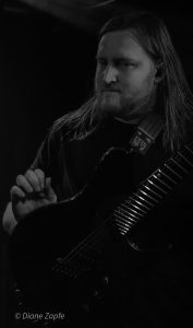 Dann wurde es atmosphärisch und melancholisch – Waldgeflüster aus München betraten die Bühne. Winterherz, alias Jan van Berlekom, führte die Band mit ruhiger Präsenz, fast wie ein Schamane. Ihre Songs waren keine gewöhnlichen Stücke, sondern Klanglandschaften. Nebel zog auf, das Licht wurde bläulich gedämpft und die Stimmen des Publikums verklangen. Mit jedem Akkord aus „Knochengesänge“ und „Knochengesänge II“, dem taufrischen Doppelrelease vom 7. November, schien die Zeit stillzustehen. Der vorletzte Song „Unter brozenen Kronen“ legte sich wie ein stilles Gebet über die Menge, bevor der Titeltrack „Knochengesänge“ als Abschlussstück noch einmal alle Emotionen freisetzte. Ein kathartischer Moment, den man nicht so schnell vergisst.