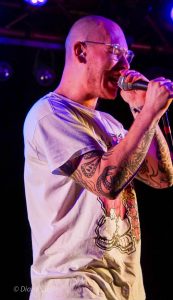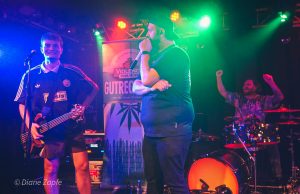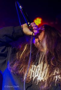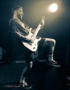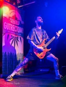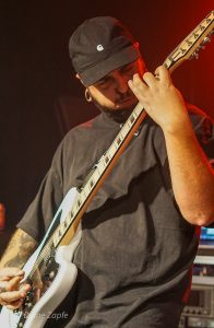 Headliner waren Gutrectomy aus Lörrach (seit 2011 aktiv). Die Band besteht aktuell aus Phil (Gitarre), Dennis (Gesang), Louis (Bass) und Julien (Drums), wobei Julien erst seit einem halben Jahr dabei ist. Musikalisch blieb nichts auf einem Haufen: Brutal Slam, Deathcore, Hardcore-Parts und sogar technoartige Einlagen mischten sich zu einem absolut wilden Set. Dazu kam ein sehr eigener Humor – inklusive Luftballons und Luftschlangen, die zwischendurch durchs Publikum flogen. Die Fans feierten es, für mich war es allerdings eher irritierend. Vorne konnte ich irgendwann nicht mehr fotografieren, denn die Crowd wurde zunehmend unberechenbar. Es gab sogar eine Wall of Death, bei der sich das Publikum in zwei Hälften teilte und anschließend aufeinander zurannte. Zudem wurde an mehreren Stellen der typische Hardcore-Tanz ausgepackt: Ich sah Fans, die beim Windmilling ihre Arme wie rotierende Windmühlen durch die Luft wirbelten. Andere legten den klassischen Two-Step hin, also diesen schnellen, hüpfenden Tanzschritt, der immer während der Breakdowns entsteht. Einige gingen in Richtung Crowdkilling, indem sie extrem weite und harte Bewegungen direkt am Rand der Crowd ausführten. Wieder andere zeigten Floorpunching, bei dem sie im Takt auf den Boden einschlugen, und zwischendurch flogen auch vereinzelte High-Kicks, bei denen Tritte weit über Kopfhöhe ausgeteilt werden. Kurz gesagt: Die volle Hardcore-Choreografie