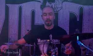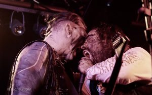 Derweil trudelten Sandra und Thomas ein und wir positionierten uns wie immer vor der Bühne. Da der Starfotograf und Skulls and Bones Magazine Herausgeber Karsten Oliver Schulze sich schon am Pfosten plaziert hatte, kam ich mir etwas überflüssig vor. Nichtsdestotrotz gab ich mein Bestes und bei FUNERAL XTC erkannte ich gleich den Sänger von Mesmerized wieder, der mit dem Gitarristen sich nun mehr auf dieses Bandprojekt fokosiert. Sie lieferten einen gut hörbaren Thrash-Metal ab…