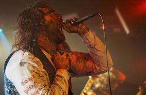 Und dann kam auch schon Imha Tarikat. Zumindest auf die Bühne, denn der Soundcheck wollte irgendwie nicht enden und verzweifelte Zuschauer machten sich Luft: „Ach, fangt doch einfach an zu spielen.“ Da die Introeinspielungen auch nicht funktionierten, verzichtete man darauf und fing wirklich an zu spielen. Aber irgendwie war die Stimmung gekippt, es gab kaum Applaus und es wurde immer leerer. Bei dem einen Song wurden zwei Bandmitglieder an Gitarre und Bass gewechselt. Das wäre auch kein Problem gewesen, wenn nicht beim Zurückwechseln die eine Gitarre tot gewesen wäre. Etwas improvisieren bis es wieder ging. Mit voller Wucht hauten sie ihr „Radical Rightousness“ raus und die verbliebene Fangemeinde taute auf. Danach „Son Of Ultradevotion“ und beim Drumsolo hatten sie mich wieder. Bitte behaltet diesen Schlagzeuger. Bei „Imha Tarikati“ fingen die Soundprobleme an, aber Kerem Yilmaz schrie seine Wut ins Mikro: „Vergesst die Musik, wir sind hier und brennen für euch, lasst alles raus, hier und jetzt ist die Gelegenheit all die Wut und den aufgestauten Frust loszuwerden.“ Das damit gemeint war, sich das Mikro vor den Kopp zu kloppen, wie Herr Heiko Glamtner es tat, sagte er nicht dazu. Heiko hätte das wohl bei Teethgrinder so gelernt, aber dann doch gegen den Sänger verloren. Aha…
