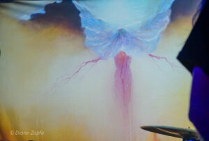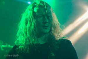 Das Projekt aus Askim (Norwegen) existiert seit 2015 und wurde von Mathias Hemmingby ins Leben gerufen. Der Name ist inspiriert von einem Ort aus Der Herr der Ringe, ein Heim der Elben – und genau so fühlt sich die Musik auch an: wie eine Reise durch eine mythische, weite Welt. Live wurde Hemmingby unterstützt von Jon Anders Krogh am Bass, Karelius Ihlang am Schlagzeug und an der Gitarre Erlend Andersen. Hinter der Band liefen Projektionen von Wäldern, Nebel, Lichtungen. Schon nach wenigen Minuten hatte man weniger das Gefühl, in einem Club zu stehen, sondern eher, auf einem ausgedehnten Waldspaziergang zu sein – nur eben mit mächtigem Soundtrack. Eldamar arbeiten viel mit flächigen Keyboards, langen instrumentalen Passagen und einer Atmosphäre, die stellenweise an Filmmusik erinnert. Gesang gibt es kaum; wenn, dann tauchen gezielt gesetzte Screams oder ätherische weibliche Stimmen auf, die wie ferne Geister durch die Kompositionen ziehen. Zwischendurch wurde es fast schon kosmisch, besonders in den psychedelisch angehauchten Momenten, in denen man eher durch Sternennebel als durch Bäume zu treiben schien. Leider gab es keine Setlist, denn mich hätte es wirklich sehr interessiert, welche Stücke sie für diesen Abend ausgewählt hatten. Meine persönliche Überraschung des Abends.