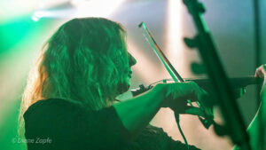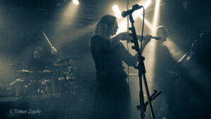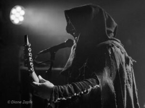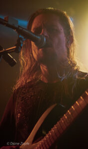 Seit 2016 aktiv und beheimatet in Genf (Schweiz) haben sich Cân Bardd mit inzwischen drei Alben einen starken Namen im Epic/Atmospheric Folk Black Metal erspielt. Hinter dem Projekt stehen vor allem Malo Civelli (Gesang, Gitarren, Bass, Keyboards, orchestrale Arrangements) und Dylan Watson am Schlagzeug. Live wurde das Material spannend umgesetzt. Ein festes Keyboard fehlte, doch dadurch litt der Sound keineswegs – im Gegenteil. Eine Geigerin übernahm die melodischen Linien und steuerte zugleich den klaren, weiblichen Gesang bei, was den Stücken eine sehr organische, fast mittelalterlich anmutende Wärme verlieh. Der Gitarrist griff zusätzlich zur Flöte, der Bassist ergänzte mit Backing Vocals. Wie beschreibt man ihren Stil am besten? Episch, weit, naturverbunden. Die Songs bauen Landschaften auf: Bergketten im Morgenlicht, alte Pfade, Sagen und Erinnerungen. Über den oft treibenden Drums entfalten sich hymnische Melodien, die sofort Bilder im Kopf entstehen lassen. Der harsche Black-Metal-Gesang wird immer wieder von klaren, fast zerbrechlichen Passagen durchbrochen, wodurch eine packende Dynamik entsteht. Nach meinem Empfinden dominierten Cân Bardd den Abend – musikalisch, emotional und auch in der Bühnenpräsenz. Vielleicht täusche ich mich, aber die Reaktionen im Publikum gaben diesem Eindruck durchaus recht.
