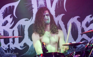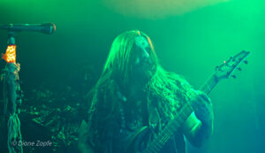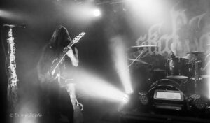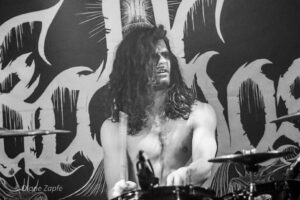 Ein großer Teil des Sets bestand aus Songs ihres gefeierten Albums „Cult of Uzura“, ergänzt durch das aktuelle Material aus „The Descent“, bei dem es sich um neu interpretierte Versionen älterer Stücke aus „Bathyscaphe“ und „Thooï“ handelt. Die Songs wurden komplett überarbeitet, erhielten neue Lyrics und neue Titel. Thematisch bewegen sich Skaphos tief in Lovecraft’schen Abgründen, Ozeanwelten und kosmischem Horror – musikalisch umgesetzt in einer wuchtigen Mischung aus Black- und Death Metal. Besonders hervorzuheben war das Schlagzeug: druckvoll, präzise und auch im Songwriting ein tragendes Element. Gerade auf der kleinen Bühne der Goldgrube war das Drumkit extrem präsent und dominierte den Sound stellenweise deutlich, wodurch die Gitarren zeitweise etwas in den Hintergrund rückten. Dennoch tat das der Gesamtwirkung kaum einen Abbruch, sondern verstärkte vielmehr die rohe, unmittelbare Energie des Auftritts. Auch visuell ließ die Band nichts anbrennen: Ein bis ins Detail durchdachtes Bühnenoutfit, eigens mitgebrachtes Licht und dichte Nebelschwaden schufen eine beklemmende, fast hypnotische Atmosphäre. Die Show war schlichtweg überragend. Trotz der vergleichsweise kleinen Zuschauerzahl spielte die Band mit voller Intensität – vielleicht sogar gerade deshalb. Die Zeit verging wie im Flug, so fesselnd war das Set. Als kleine Zugabe gab es für die anwesenden Fans noch einen zusätzlichen Song – ein würdiger Abschluss eines viel zu schnell vergangenen Konzerts. Wer an diesem Abend nicht dabei war, hat definitiv etwas verpasst.