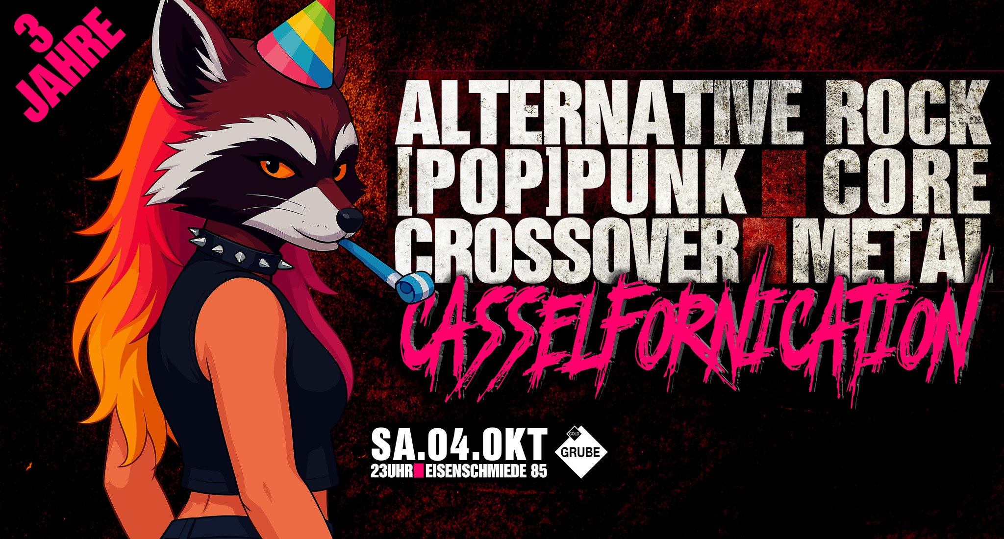 ALTERNATIVE ROCK | [pop] PUNK | CORE | CROSSOVER | METAL – DAS ist die CASSELFORNICATION. Am 04. Oktober feiern wir ihr 3-jähriges Bestehen!