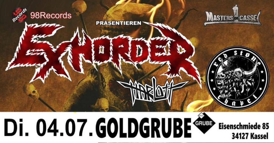 Wahnsinn – wir können Euch heute die Begründer des groovenden Thrash Metal aus New Orleans ankündigen – EXHORDER besuchen Kassel und kommen in unser Lieblings-Wohnzimmer, die Goldgrube. Aus den Sümpfen von Louisiana kommt die Band und zelebriert Thrash Metal mit harter Groove Schlagseite seit 1985. Übrigens die Musik, mit der PANTERA ihre Weltkarriere begründeten.