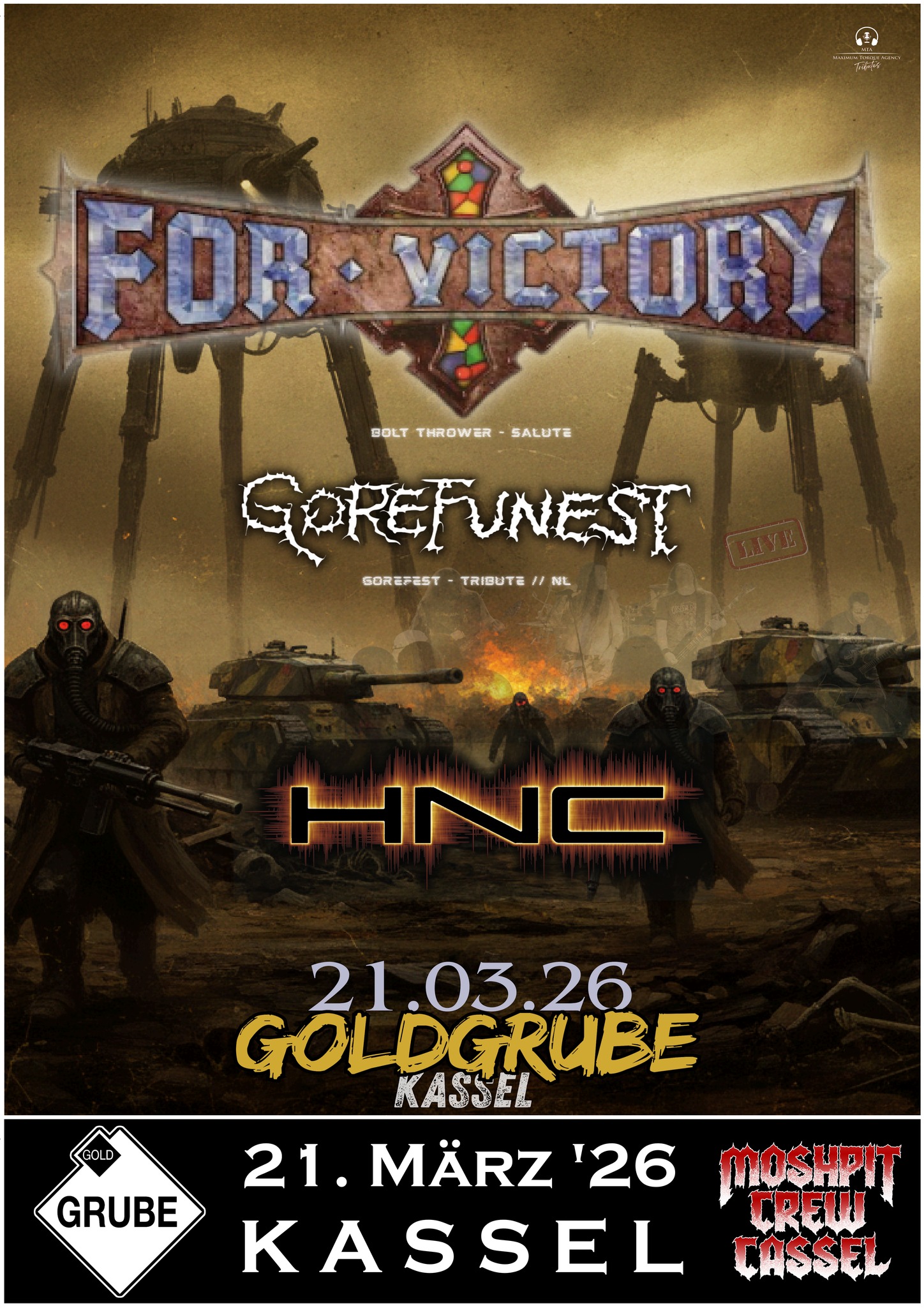 FOR VICTORY (BoltThrower-Salute) + GOREFUNEST (nl/Gorefest-Tribute) + HNC @ Goldgrube-Kassel
