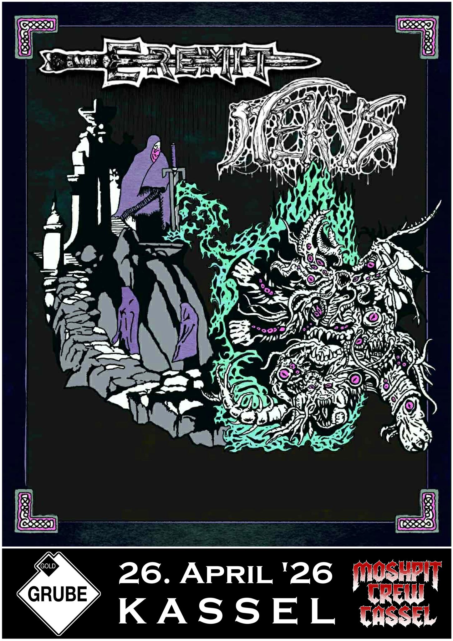 Goldgrube Kassel Eisenschmiede 85, Kassel, Hessen, DeutschlandMoshpit Crew Cassel presents: 🔥 EREMIT 🔥 Eremit ist eine deutsche Extreme Metal Band, die ihre Wurzeln in massiven und finsteren Doom hat. Mythologisches Story-telling transportiert auf zähflüssigen Riffs. Eremit […]