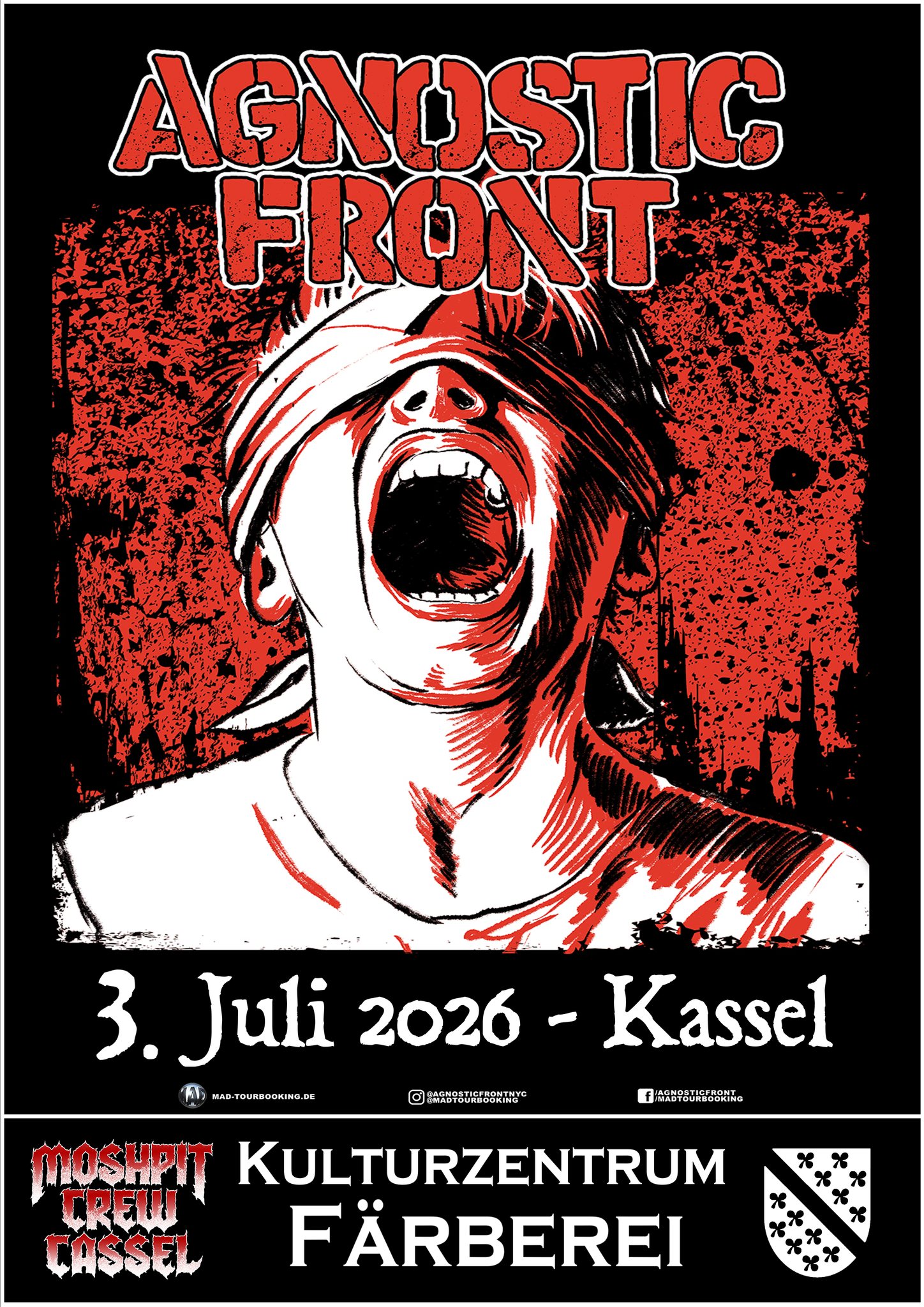 Kulturzentrum Färberei, Universitätsplatz 10, 34127 KasselMAD Tourbooking + Moshpit Crew Cassel presents: 💥 AGNOSTIC FRONT 💥 Pokey - Schlagzeug, Mike Gallo - Bass, Roger Miret - Gesang, Joseph James - Gitarre, Vinnie Stigma - Gitarre […]