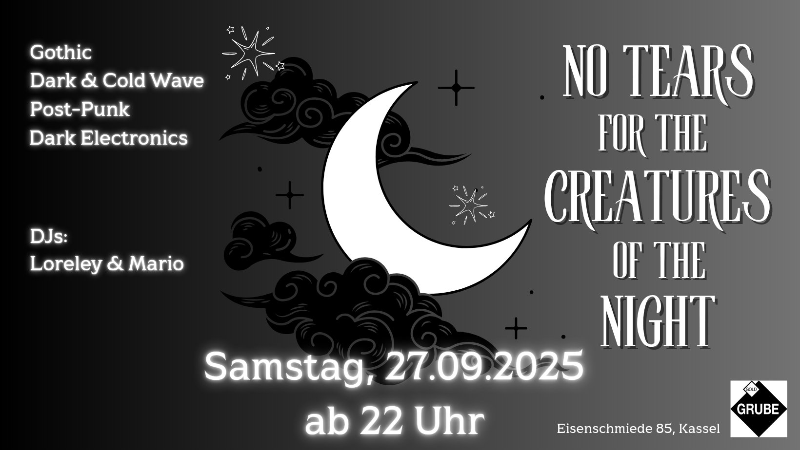 Gothic, Dark & Cold Wave, Post-Punk, Neofolk, Dark Electronics und Indie-Perlen mit den DJs Loreley und Mario 🔊