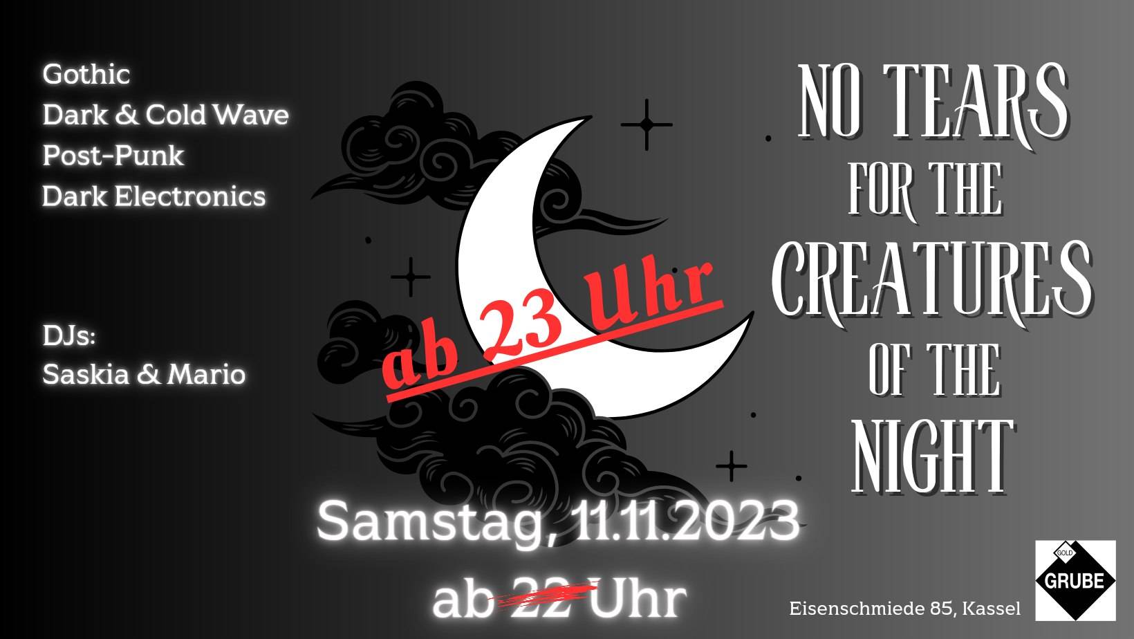 Gothic, Dark & Cold Wave, Post-Punk, Neofolk, Dark Electronics und Indie-Classics mit den DJs Saskia und Mario 🔊
