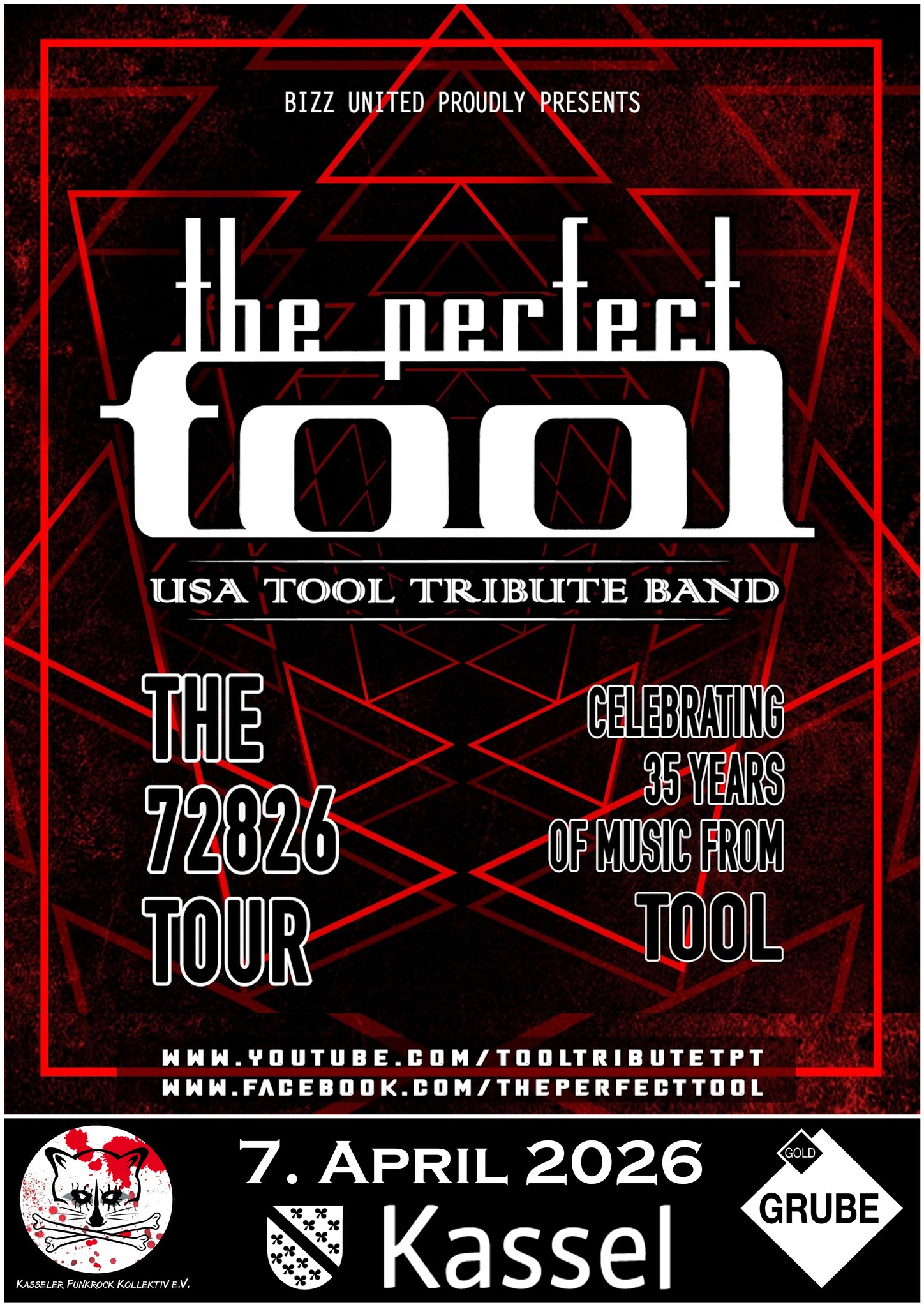 The Perfect Tool, die weltweit beste Tool-Tribute-Band, geht auf Europatournee. Seit vielen Jahren tourt die Band durch Europa, mit zahlreichen ausverkauften Konzerten und Auftritten bei Festivals wie Graspop. Im Frühjahr 2026 planen wir ihre neue Europatournee, bei der sie das 35-jährige Bestehen von Tool feiern werden, und ich würde gerne mit Ihnen über ein exklusives Konzert in der Goldgrube sprechen. Unten finden Sie die verfügbaren Termine.