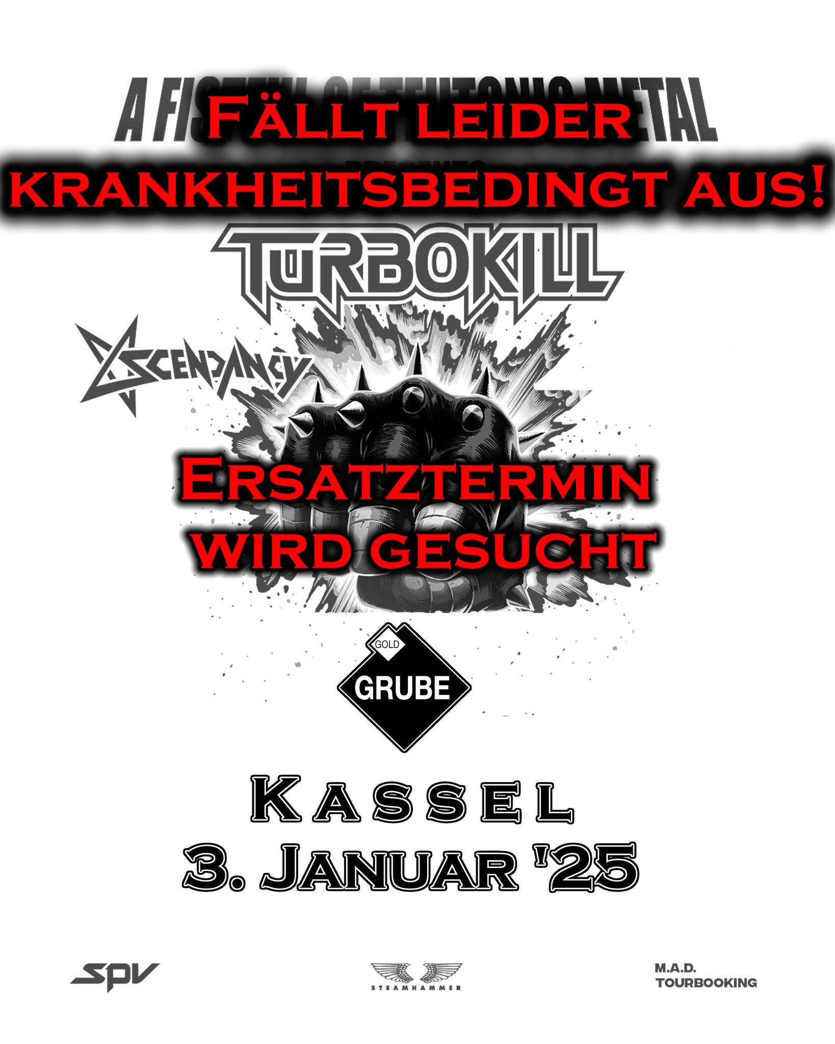 ❗ TURBOKILL müssen das Event leider krankheitsbedingt absagen.