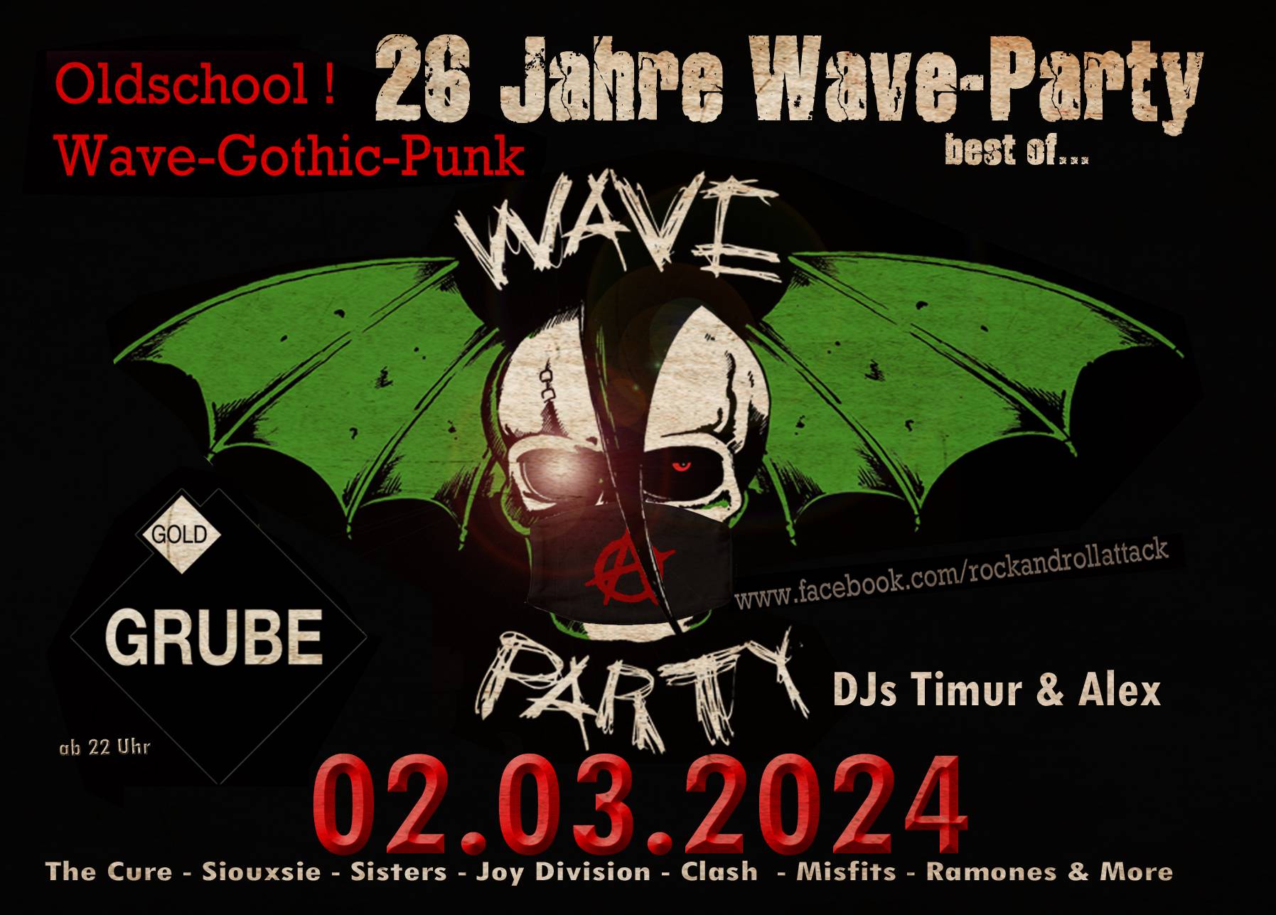 Dj Timur und Alex mit Oldschool Wave / Gothic (The Cure , Siouxsie, Sisters, Joy division, etc..) , Punk ( Clash, Ramones, Dead Kennedys).
